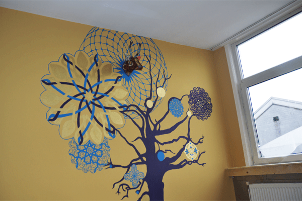 Murals by Iris are unique. She makes them specially for you! She listens, asks, interprets, designs, sees details and senses needs. She has many technical possibilities at her fingertips. There’s a 5solution for every wall!